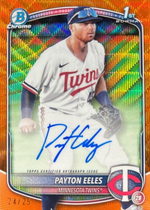 2025 Bowman Chrome PAYTON EELES 1st Orange Wave Refractor On Card Auto /25 Twins
