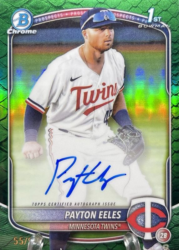 2025 Bowman Chrome 1st Payton Eeles Twins Green Reptilian on card Auto /99