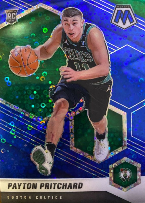The Payton Pritchard 2020 Mosaic #210 Fast Break Blue /85 Rookie card in Raw condition has not changed in price in the last 30 days and was last sold for $19.99 .