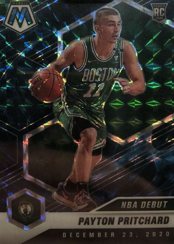 The Payton Pritchard 2020 Mosaic #269 NBA Debut - Genesis /(SSP) Rookie card in Raw condition has not changed in price in the last 30 days and was last sold for $26.00 .