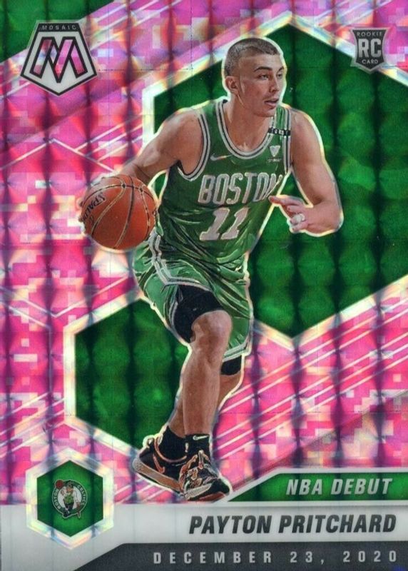 The Payton Pritchard 2020 Mosaic #269 NBA Debut - Pink Camo Rookie card in Raw condition has moved up $4.46 (+429%) in the last 30 days and was last sold for $5.50 .
