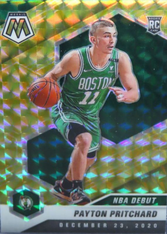 The Payton Pritchard 2020 Mosaic #269 NBA Debut - Reactive Yellow Rookie card in Raw condition has moved down -$0.05 (-4.8%) in the last 30 days and was last sold for $0.99 .