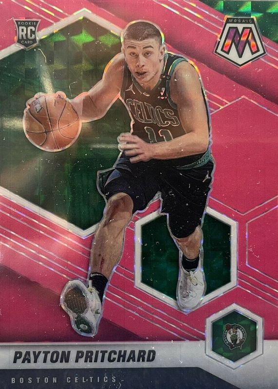 The Payton Pritchard 2020 Mosaic #210 Pink Fluorescent /10 Rookie card in Raw condition has not changed in price in the last 30 days and was last sold for $150.00 .