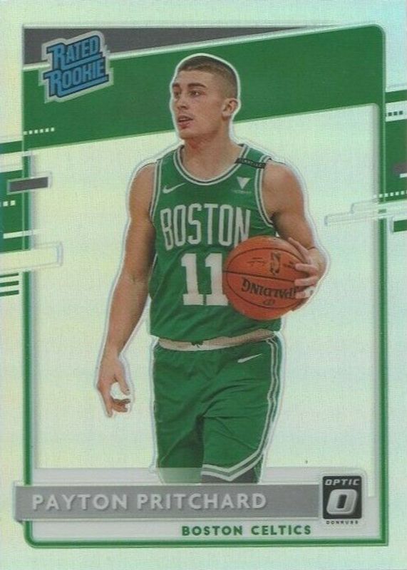 The Payton Pritchard 2020 Optic #176 Holo Rookie card in Raw condition has moved up $2.60 (+59.2%) in the last 30 days and was last sold for $6.99 .