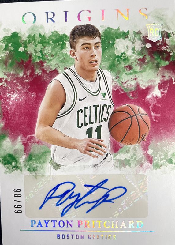 The Payton Pritchard 2020 Origins #RA-PRI Rookie Autographs - Red /99 card in Raw condition has not changed in price in the last 30 days and was last sold for $50.00 .