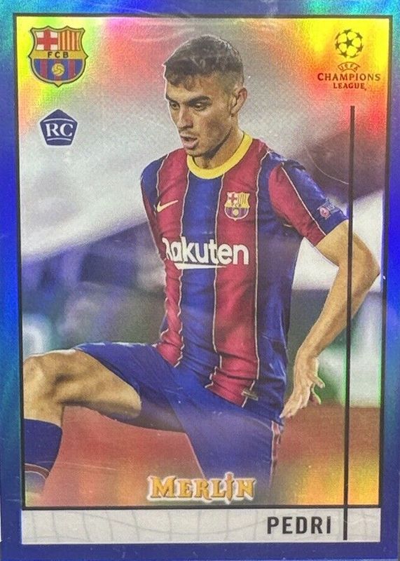 Pedri 2020 Topps Merlin Chrome UEFA Champions League #89 Blue Refractor /75 Rookie RAW Price Guide