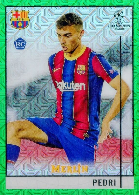 Best Prices Available For Sale of Pedri 2020 Topps Merlin Chrome UEFA Champions League #89 Green Mojo Refractor /99
