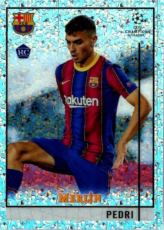 Best Prices Available For Sale of Pedri 2020 Topps Merlin Chrome UEFA Champions League #89 Speckle Refractor /150