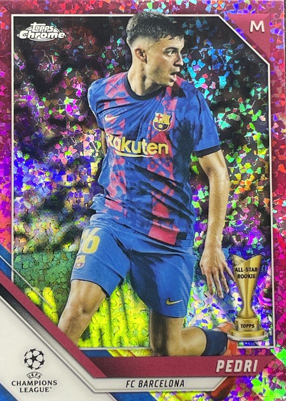 Best Prices Available For Sale of Pedri 2021 Topps Chrome UEFA Champions League #89 Pink Mini-Diamond Refractor /175