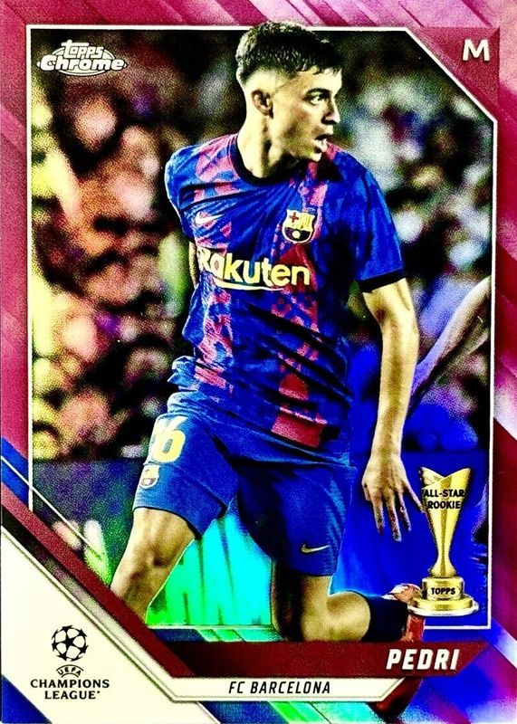The Pedri 2021 Topps Chrome UEFA Champions League #89 Pink Refractor /175 card in Raw condition has not changed in price in the last 30 days and was last sold for $7.50 .