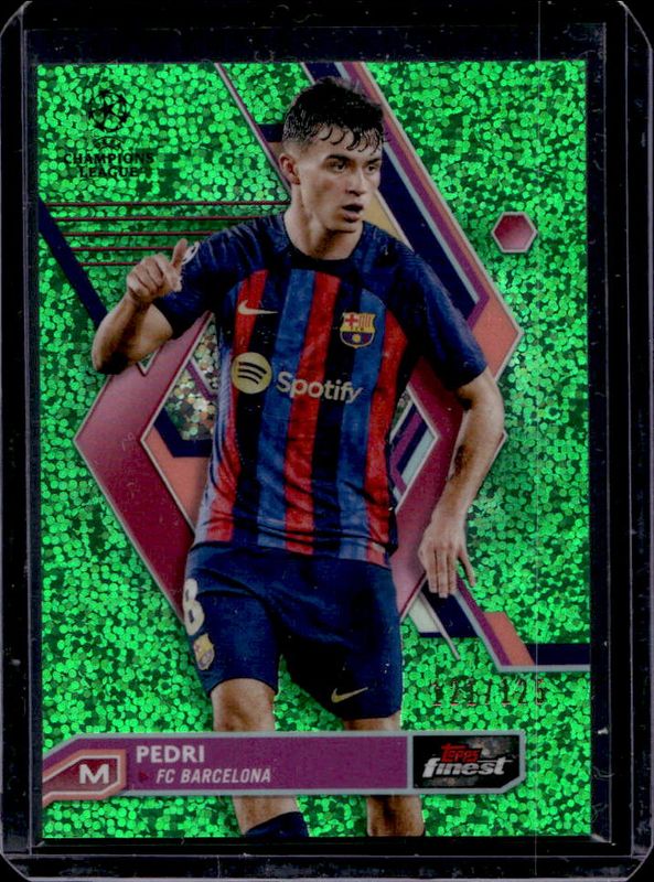 Pedri 2022 Topps Finest UEFA Club Competitions #8 Green Speckle Refractor /125 RAW Price Guide