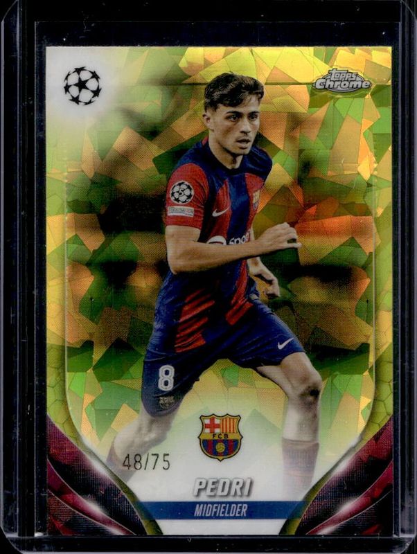 Pedri 2023 Topps Chrome UEFA Club Competitions Sapphire Edition #15 Yellow /75 RAW Price Guide