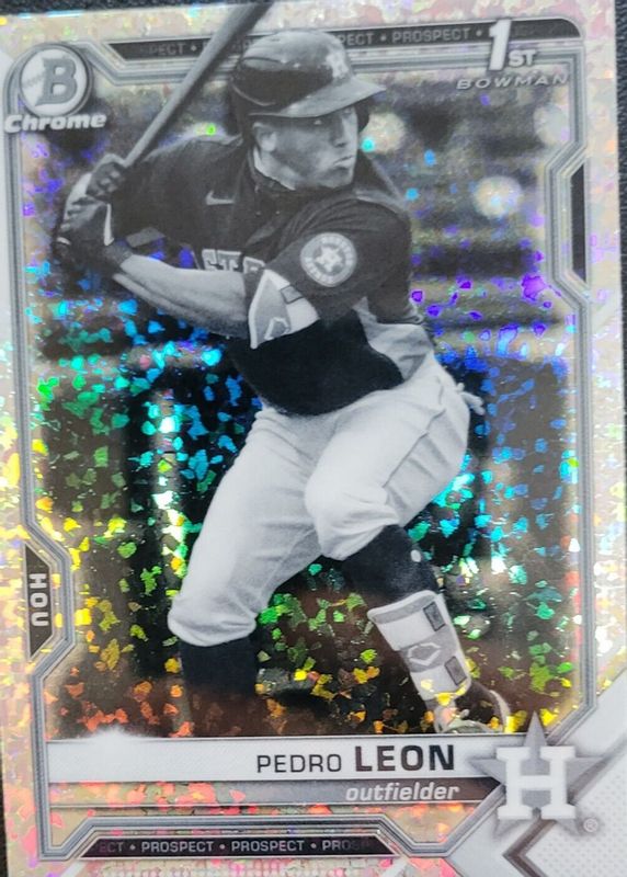 This card is 1 of 24 Pedro Leon's card variations in the 2021 Bowman Chrome set being tracked by Sports Card Investor, including Prospects (1st), Prospects - Shimmer Refractor (1st), Prospects - Refractor /499 (1st), Prospects - Speckle Refractor /299 (1st), and Prospects - Purple Refractor /250 (1st).