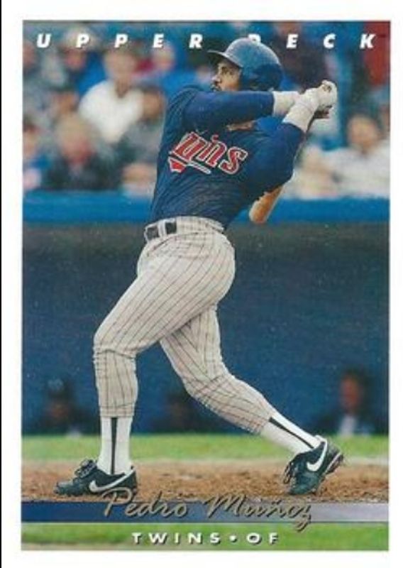 The Pedro Munoz 1993 Upper Deck #341 Base card is 1 of 2 Pedro Munoz's card variations in the 1993 Upper Deck set being tracked by Sports Card Investor, including Gold Hologram.
