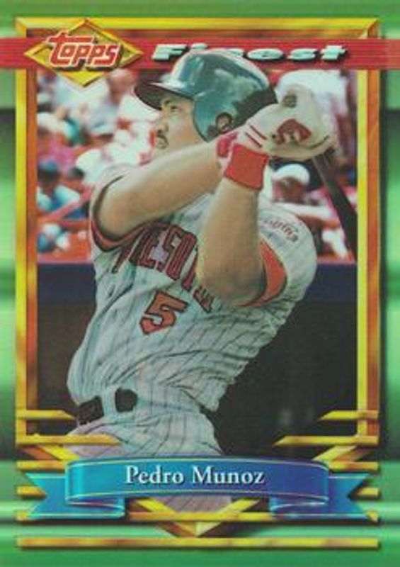 The Pedro Munoz 1994 Topps Finest #338 Refractor card is 1 of 2 Pedro Munoz's card variations in the 1994 Topps Finest set being tracked by Sports Card Investor, including Base.