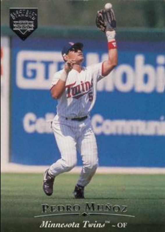 The Pedro Munoz 1995 Upper Deck #432 Electric Diamond card is 1 of 5 Pedro Munoz's card variations in the 1995 Upper Deck set being tracked by Sports Card Investor, including Base, Electric Diamond Gold, Special Edition, and Special Edition Gold.
