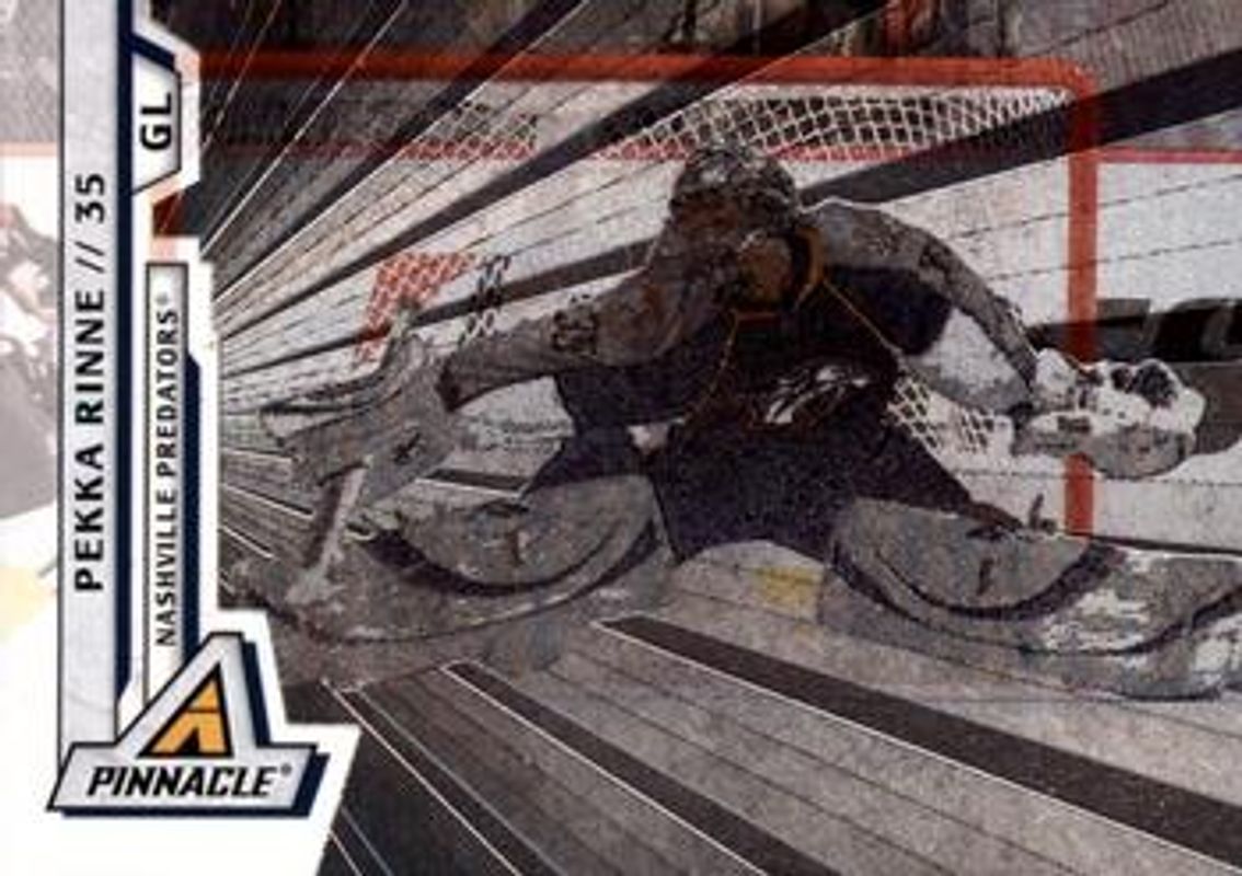 The Pekka Rinne 2010 Pinnacle #86 Rink Collection card is 1 of 9 Pekka Rinne's card variations in the 2010 Pinnacle set being tracked by Sports Card Investor, including Base /299, Artists Proofs, City Lights Materials /499, Threads /499, and City Lights Signatures /35.