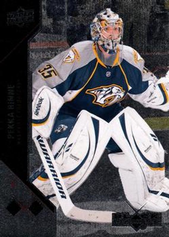 The Pekka Rinne 2011 Upper Deck Black Diamond #128 Base card is 1 of 4 Pekka Rinne's card variations in the 2011 Upper Deck Black Diamond set being tracked by Sports Card Investor, including Ruby /100, Gold /10, and Platinum /1.