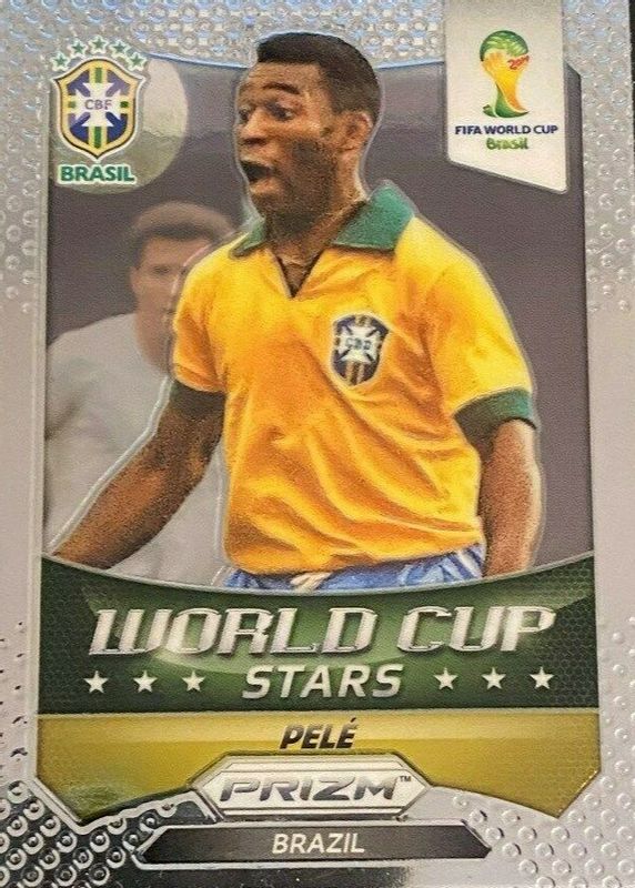 This card is 1 of 6 Pele's card variations in the 2014 Prizm World Cup set being tracked by Sports Card Investor, including Signatures, World Cup Stars - Blue & Red Wave, World Cup Stars - Red White Blue Power Plaid, World Cup Stars - Silver, and World Cup Stars - Yellow & Red Pulsar.