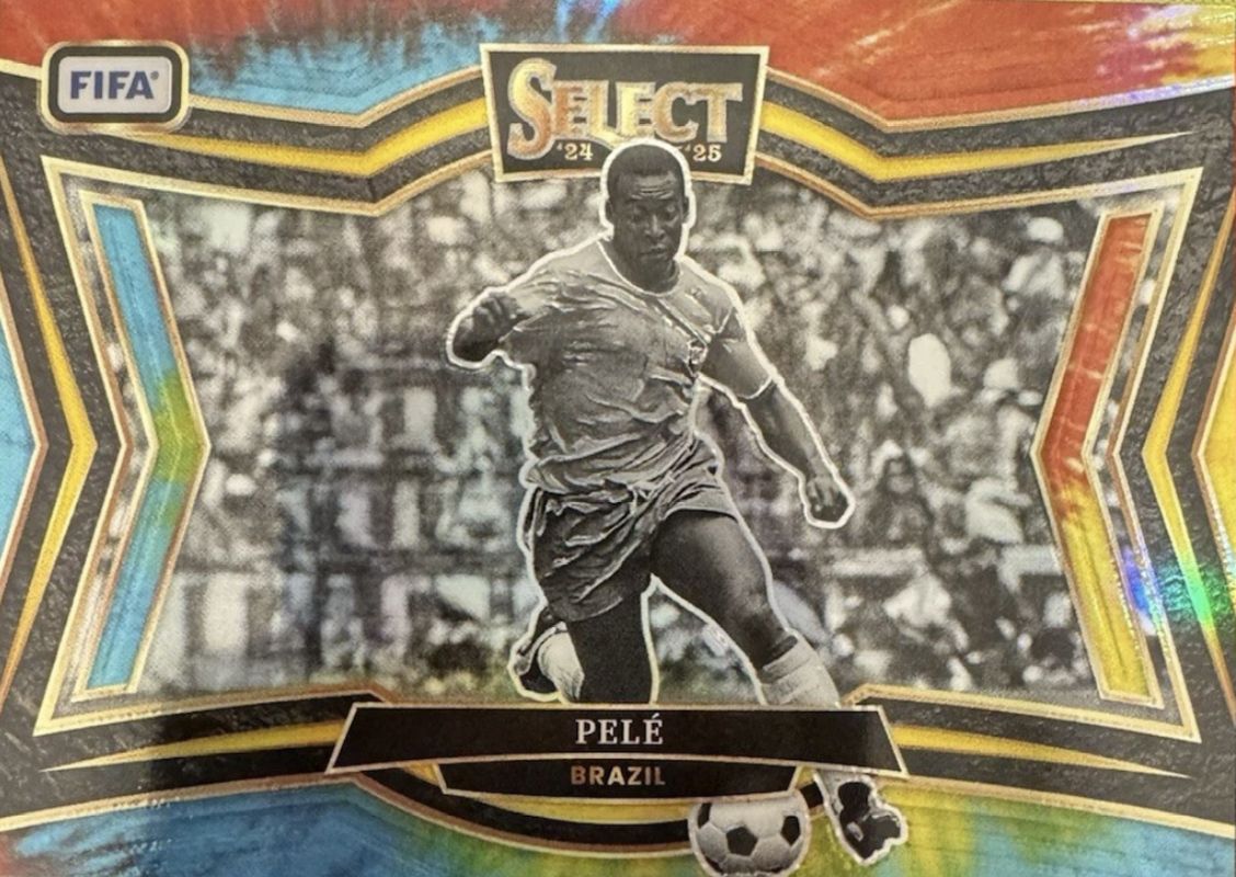 The Pele 2024 Select FIFA #250 Field Level Tie-Dye /25 card is 1 of 32 Pele's card variations in the 2024 Select FIFA set being tracked by Sports Card Investor, including Artistic Impressions, Field Level, Field Level Blue, Field Level Blue Lazer, and Field Level Checkerboard.