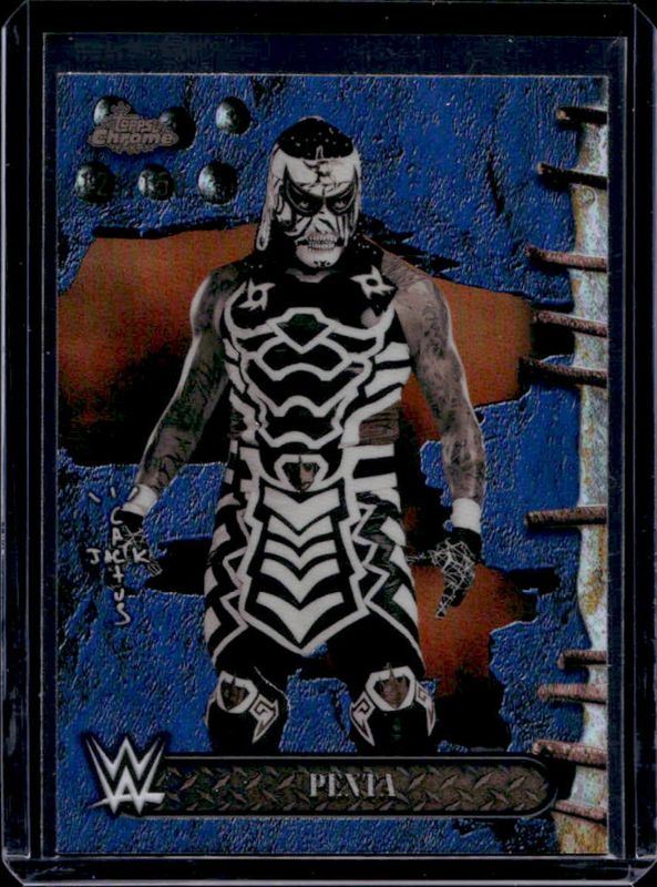The Penta 2025 Topps Chrome WWE x Cactus Jack #23 Blue Refractor /150 card is 1 of 18 Penta's card variations in the 2025 Topps Chrome WWE x Cactus Jack set being tracked by Sports Card Investor, including Base, Refractor, White Refractor, Purple Refractor /250, and Gold Refractor /50.