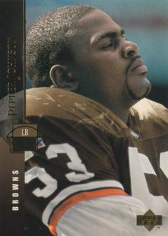 The Pepper Johnson 1994 Upper Deck #216 Base card is 1 of 3 Pepper Johnson's card variations in the 1994 Upper Deck set being tracked by Sports Card Investor, including Electric, and Electric Gold.
