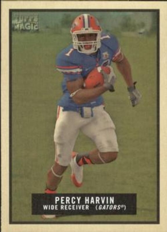 The Percy Harvin 2009 Topps Magic #57 Base Rookie card is 1 of 6 Percy Harvin's card variations in the 2009 Topps Magic set being tracked by Sports Card Investor, including Mini, Mini Black, 1948 Magic, Autographs, and Thrills.