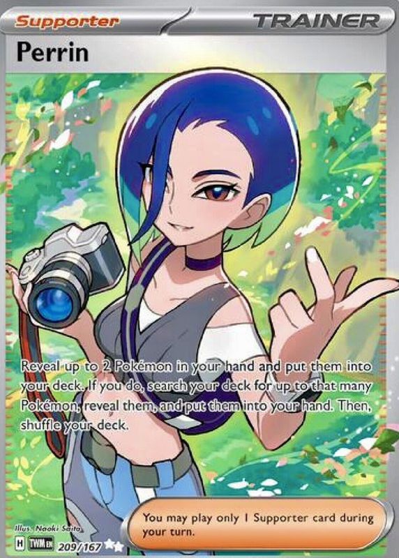 The Perrin 2024 Scarlet & Violet: Twilight Masquerade #209/167 Ultra Rare card in Raw TCG (Near Mint) condition has moved up $0.96 (+19.3%) in the last 30 days and was last sold for $5.96 .