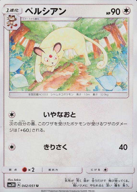 The Persian 2017 Japanese Sun & Moon: To Have Seen the Battle Rainbow #042/051 Base card in Raw TCG (Near Mint) condition has not changed in price in the last 30 days.