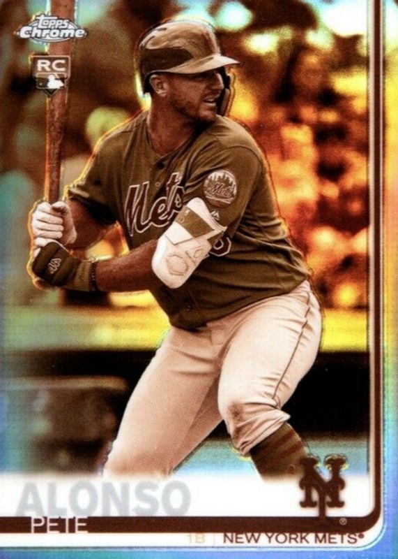 Pete Alonso's Baseball cards are available in at least 158 sets. Pete Alonso's biggest 7-day price movers are 2019 Topps Chrome #204 Pink Refractor, 2019 Topps Chrome #204 Sepia Refractor, and 2019 Bowman's Best #32 Base.