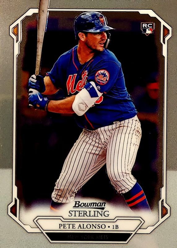 The Pete Alonso 2019 Bowman Sterling #BSR-61 Base Rookie card in Raw condition has moved up $0.23 (+23.2%) in the last 30 days and was last sold for $1.25 .