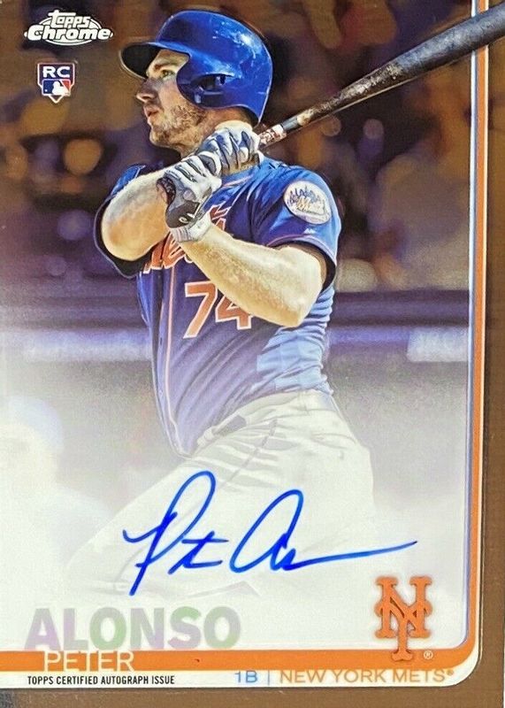 The Pete Alonso 2019 Topps Chrome #RA-PA Rookie Auto card in Raw condition has moved up $42.36 (+54.6%) in the last 30 days and was last sold for $120.00 .