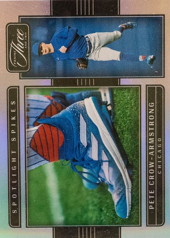 The Pete Crow-Armstrong 2023 Panini Three and Two #SS4 Spotlight Spikes /(SSP) card in Raw condition has not changed in price in the last 30 days and was last sold for $10.37 .