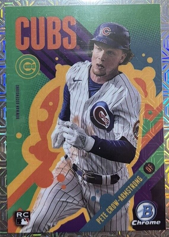 The Pete Crow-Armstrong 2024 Bowman Chrome Mega Box #BA-20 Bowman Ascensions Rookie card in Raw condition has not changed in price in the last 30 days and was last sold for $14.50 .