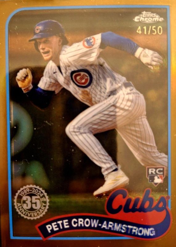 The Pete Crow-Armstrong 2024 Topps Chrome #89CB-19 1989 Topps - Gold Refractor /50 Rookie card in Raw condition has not changed in price in the last 30 days and was last sold for $50.00 .