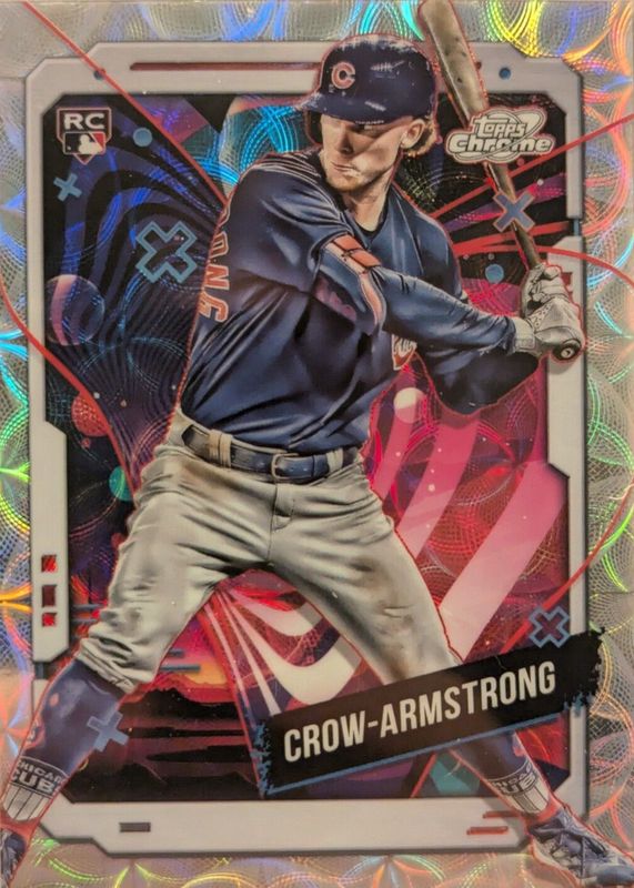 The Pete Crow-Armstrong 2024 Topps Chrome Cosmic #52 Nucleus Refractor Rookie card in Raw condition has moved up $24.00 (+166%) in the last 30 days and was last sold for $38.50 .
