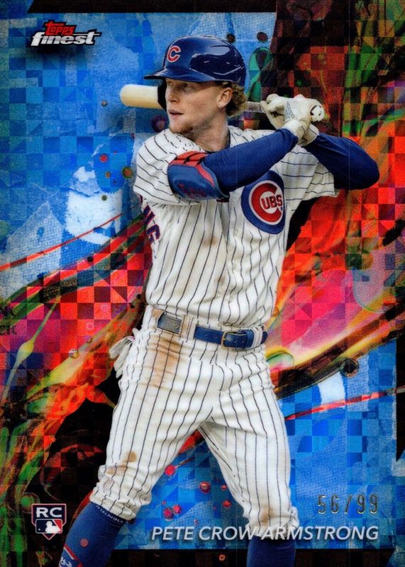 The Pete Crow-Armstrong 2024 Topps Finest #53 Common - Blue Checkerboard Refractor /99 Rookie card in Raw condition has not changed in price in the last 30 days and was last sold for $18.00 .