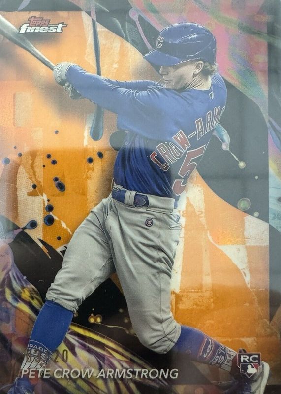 The Pete Crow-Armstrong 2024 Topps Finest #104 Uncommon - Orange Refractor /20 Rookie card in Raw condition has not changed in price in the last 30 days and was last sold for $84.00 .