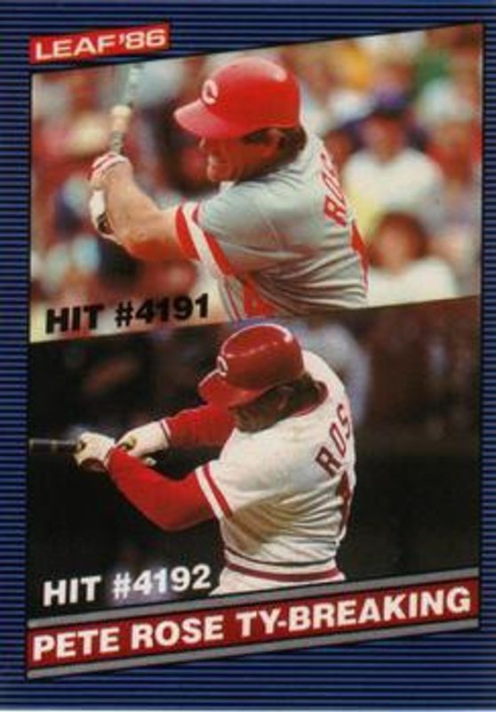 The Pete Rose 1986 Leaf #209 Base card is 1 of 3 Pete Rose's card variations in the 1986 Leaf set being tracked by Sports Card Investor, including #260 Base, and #53 Base.
