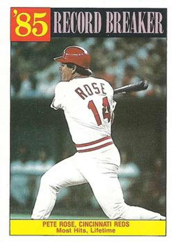 The Pete Rose 1986 Topps #206 Base card is 1 of 9 Pete Rose's card variations in the 1986 Topps set being tracked by Sports Card Investor, including #1 Base, #2 Base (The Pete Rose Years), #3 Base (The Pete Rose Years), #4 Base (The Pete Rose Years), and #5 Base (The Pete Rose Years).
