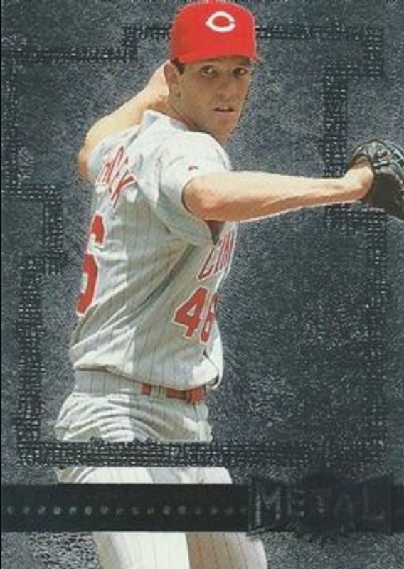 The Pete Schourek 1996 Metal Universe #152 Platinum card is 1 of 2 Pete Schourek's card variations in the 1996 Metal Universe set being tracked by Sports Card Investor, including Base.
