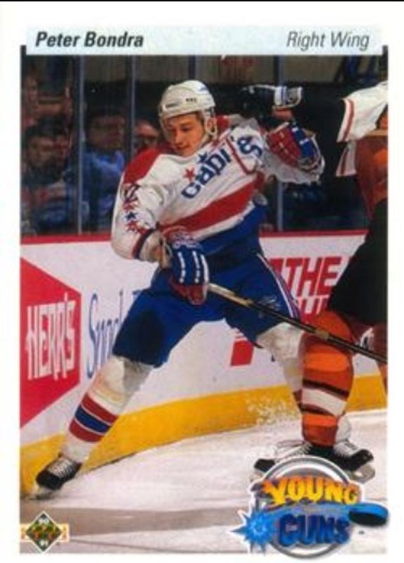 The Peter Bondra 1990 Upper Deck #536 Base Rookie card is 1 of 2 Peter Bondra's card variations in the 1990 Upper Deck set being tracked by Sports Card Investor, including Young Guns Base.