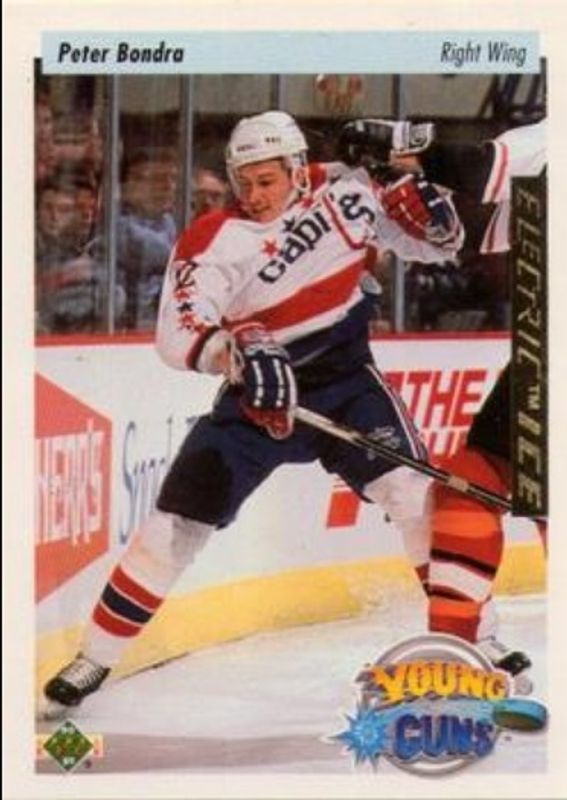 The Peter Bondra 1995 Upper Deck #232 Electric Ice Gold card is 1 of 13 Peter Bondra's card variations in the 1995 Upper Deck set being tracked by Sports Card Investor, including #232 Base, #339 Base, #249 Base, #232 Electric Ice, and #339 Electric Ice.