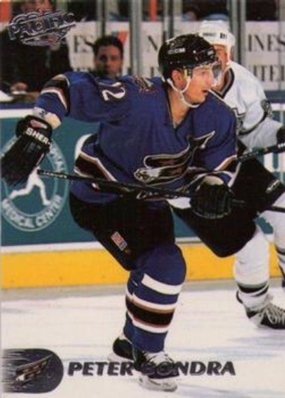 The Peter Bondra 1998 Pacific #12 Base card is 1 of 6 Peter Bondra's card variations in the 1998 Pacific set being tracked by Sports Card Investor, including Ice Blue, Red, Dynagon Ice, Gold Crown Die Cuts, and Titanium Ice /99.