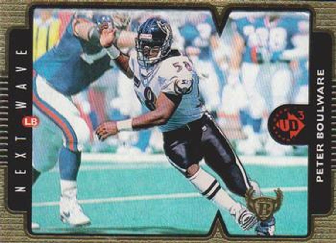 The Peter Boulware 1998 Upper Deck UD3 #224 Base card is 1 of 6 Peter Boulware's card variations in the 1998 Upper Deck UD3 set being tracked by Sports Card Investor, including #134 Base, #44 Base, #134 Die-Cut /2000, #224 Die-Cut /2000, and #44 Die-Cut /2000.