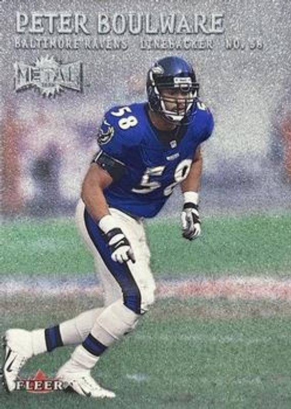 The Peter Boulware 2000 Metal #157 Base card is 1 of 2 Peter Boulware's card variations in the 2000 Metal set being tracked by Sports Card Investor, including Emerald.