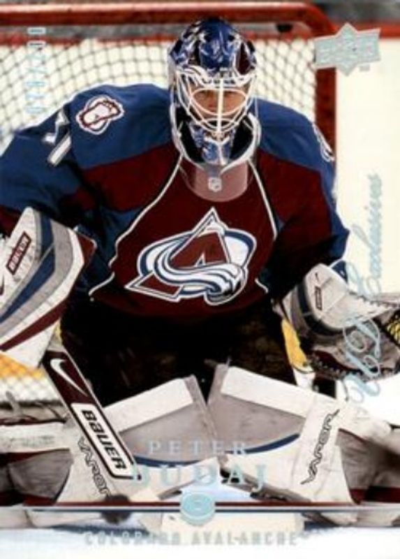 The Peter Budaj 2008 Upper Deck #150 UD Exclusives /100 card is 1 of 8 Peter Budaj's card variations in the 2008 Upper Deck set being tracked by Sports Card Investor, including Base, UD High Gloss /10, Printing Plates Black /1, Printing Plates Cyan /1, and Printing Plates Magenta /1.
