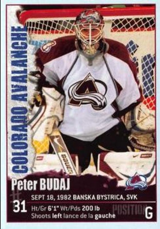 The Peter Budaj 2009 Panini Stickers #192 Base card is 1 of 2 Peter Budaj's card variations in the 2009 Panini Stickers set being tracked by Sports Card Investor, including Base.