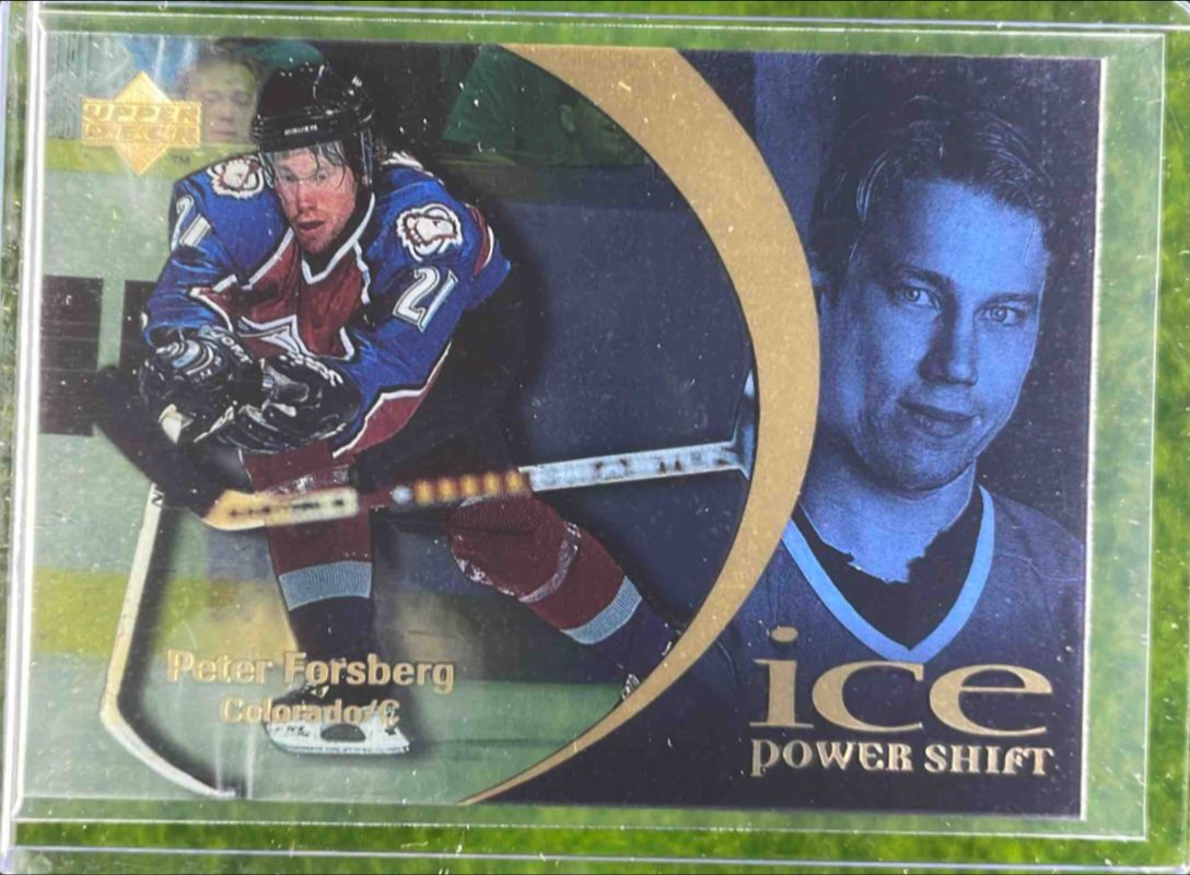 The Peter Forsberg 1997 Upper Deck Ice #61 Power Shift card is 1 of 7 Peter Forsberg's card variations in the 1997 Upper Deck Ice set being tracked by Sports Card Investor, including Base, Parallel, Champions, Lethal Lines, and Lethal Lines 2.