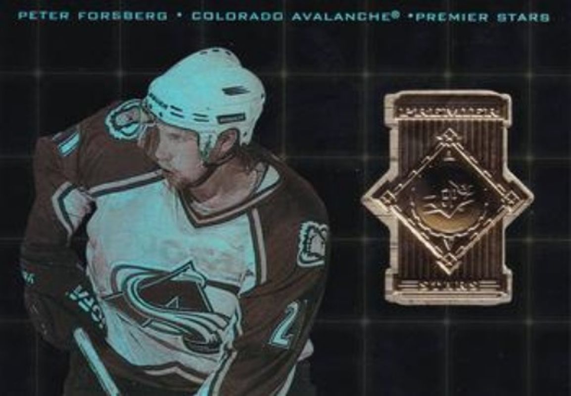 The Peter Forsberg 1998 SPx Top Prospects #PS-23 Premier Stars card is 1 of 6 Peter Forsberg's card variations in the 1998 SPx Top Prospects set being tracked by Sports Card Investor, including Base /1999, Radiance /100, Spectrum /1, Highlight Heroes, and Lasting Impressions.